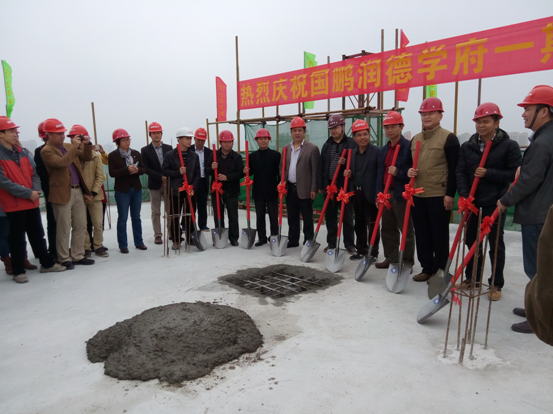 新年大吉——國鵬潤德學府順利封頂 時間:2015-01-27 3105 1月26日上午,由惠州公司承建的國鵬潤德學府一期工程在熱烈喜慶的氣氛中順利封頂。廣東國鵬集團伍貴廉董事長、傅強總經理、沈總、鄭總等領導參加儀式,公司總工程師龐文榮、九處主任周才富及項目部管理人員參加了封頂儀式。 國鵬潤德學府位于仲愷大道與和暢六路交匯處,緊鄰仲愷總部經濟大廈。項目占地約3.3萬平米,總建筑面積約15.6萬平米,分兩期開發,共規劃住宅7棟。一期工程于2014年4月15日開始施工,總建筑面積72600平方米,由3棟塔樓組成,分別為29層、29層、30層,最高96.05米。項目外立面現代簡約時尚,園林舒適優雅,配有幼兒園,小學,商業街等配套設施,是國鵬集團在仲愷中心地區開發的地標建筑,未來將打造成學位府邸、人文社區。