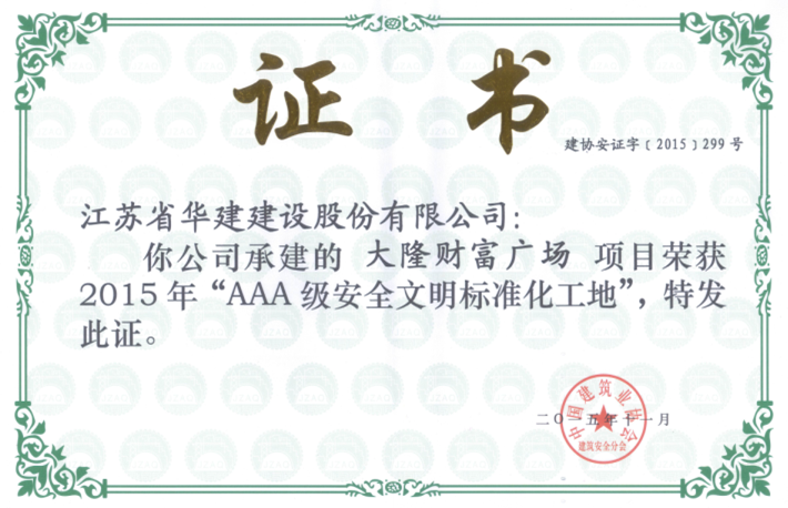 116,惠州分公司總工程師龐文榮參加了在西安召開的中國建筑業(yè)協(xié)會建筑安全分會2015年年會暨理事會,會上表彰了2015年 “AAA級安全文明標準化工地”獲獎單位?;葜莘止究偝邪┕さ拇舐∝敻粡V場成為今年惠州市唯一獲此榮譽的項目,這是惠州分公司首次獲得國家級榮譽獎項。