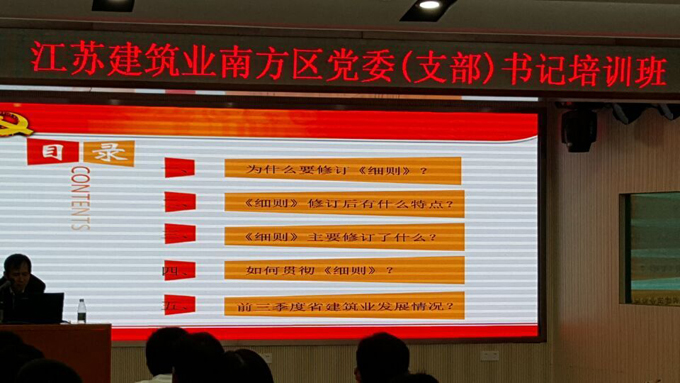 11月21日,由江蘇省住房和城鄉建設廳駐南方辦事處舉辦的南方地區黨委組織支部書記培訓班在珠海舉行,惠州公司黨總支副書記、常務副總周群利及總經理助理王健參加會議。