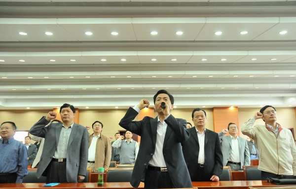 揚州建工控股系統組織黨員干部到揚州市警示教育基地參觀接受教育 時間:2011-05-27 4899 5月27日上午,建工控股公司機關、華建總部黨員干部和揚建、揚安、華宏、中專校等單位領導班子成員及黨務、紀檢、財務、行政等部門中層負責人共80多人,到揚州市警示教育基地參觀接受教育,大家觀看了預防腐敗警示教育宣傳圖片、電視專題片和違法犯罪人員現身說法錄像。建控公司黨委書記、董事長陸金龍在參觀結束前作了誡勉講話,指出這次建控系統組織黨員干部開展廉潔自律警示教育活動,是加強干部能力作風建設的一項重要內容。一系列反面案例帶來的教訓和思考,令大家深受觸動。見不賢而內自省。建控系統廣大黨員干部要從確立正確的角色定位、樹立合理的人生追求、建立完善的制度保障、打造健康的從業環境四個方面入手,進一步加強廉政教育、樹立自律意識、保持清廉本色,從而提高干事業、謀發展的能力和水平,為創建“三個揚州”、建設和諧社會作出應有貢獻。最后,陸金龍同志帶領大家集體進行了莊嚴的廉政承諾宣誓。