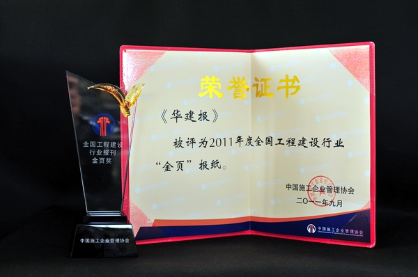 日前,在中施企協(xié)召開的2011年度通聯(lián)工作會議上,經(jīng)過專家評委仔細嚴(yán)格的評審,全國工程建設(shè)行業(yè)優(yōu)秀報刊結(jié)果揭曉,公司主辦的《華建報》再次被評為全國工程建設(shè)行業(yè) “金頁”報紙?!度A建報》創(chuàng)刊四年來,積極發(fā)揮窗口作用、平臺作用,以傳遞經(jīng)營開拓新信息、報道公司發(fā)展新成就、總結(jié)企業(yè)管理新經(jīng)驗和反映公司文化建設(shè)新成果為主要內(nèi)容,在宣傳企業(yè)形象、凝聚員工精神、塑造企業(yè)文化以及促進行業(yè)交流等方面起到了積極顯著作用,受到社會各界好評。四年來已累計獲得全國建設(shè)行業(yè)報刊“優(yōu)秀獎”兩次,并獲全國工程建設(shè)行業(yè)報刊“金頁獎”兩次。