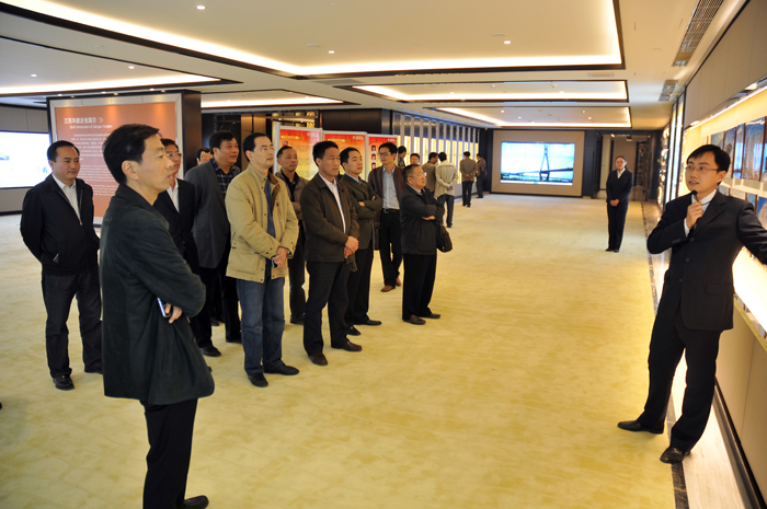 江蘇華建企業展示中心正式啟用 時間:2013-11-08 3528 11月8日,江蘇華建企業展示中心舉行揭牌儀式正式啟用,標志著華建對外形象的展示又多了一個全面展示的窗口。公司董事長陸金龍為展示中心揭牌并致辭,公司在揚領導吳士茂、程杰、錢啟明、王宏、陸俊等出席儀式。 企業展示中心位于揚州繁華地段的建設大廈,總面積近2000平米,企業展示區以文字、圖片、視頻等形式,從不同視角全面、直觀、有效地展現了公司發展歷程、區域公司風采、多元發展、精品工程、企業文化、企業榮譽等內容。展示中心同時配有小型會議室和接待場所,可安排公司一般性的商務談判和對外接待。