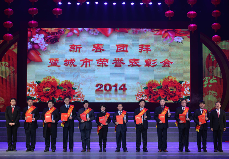 在1月12日晚揚(yáng)州市委、市政府召開的2014新春團(tuán)拜暨城市榮譽(yù)表彰會(huì)上,公司副董事長(zhǎng)、總經(jīng)理宗有農(nóng)當(dāng)選為“揚(yáng)州市十大功臣”,揚(yáng)州市委書記謝正義親自為宗有農(nóng)總經(jīng)理頒獎(jiǎng)。