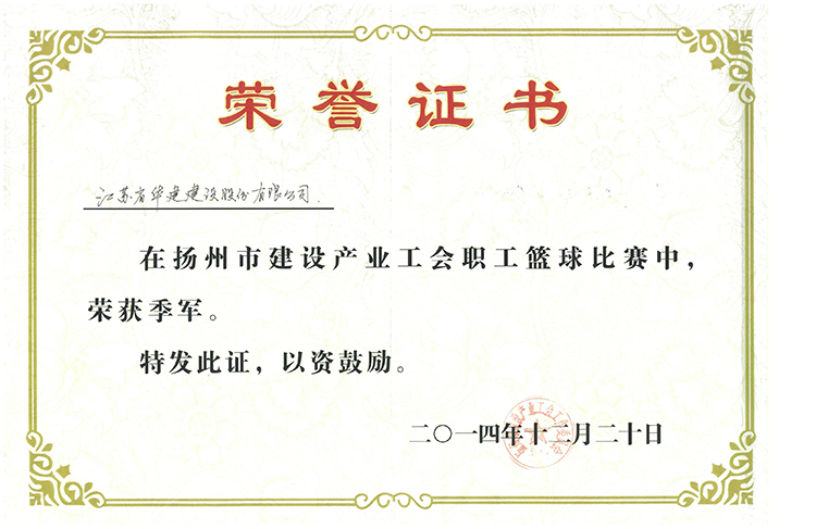 公司籃球隊獲市建設產業工會籃球賽季軍 時間:2014-12-22 3855 12月20日,在揚州市職業大學瘦西湖校區體育館舉辦的“揚州市建設產業工會籃球比賽”中,由總部機關、設計院和檢測中心職工組成的公司籃球隊努力拼搏、奮勇爭先,以兩勝一負的戰績榮獲比賽季軍。 建設產業工會田主席為公司籃球隊頒發獎狀