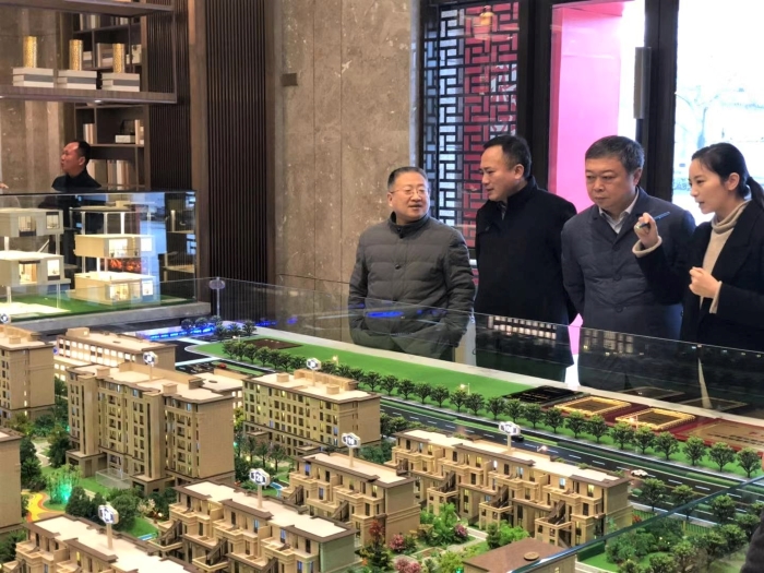 王宏董事長首先考察了華建乾院項(xiàng)目,在售樓處聽取了項(xiàng)目開發(fā)、銷售的進(jìn)度報(bào)告,詳細(xì)了解了小區(qū)戶型特點(diǎn)和配套情況,并針對(duì)一些產(chǎn)品細(xì)節(jié)提出完善意見。