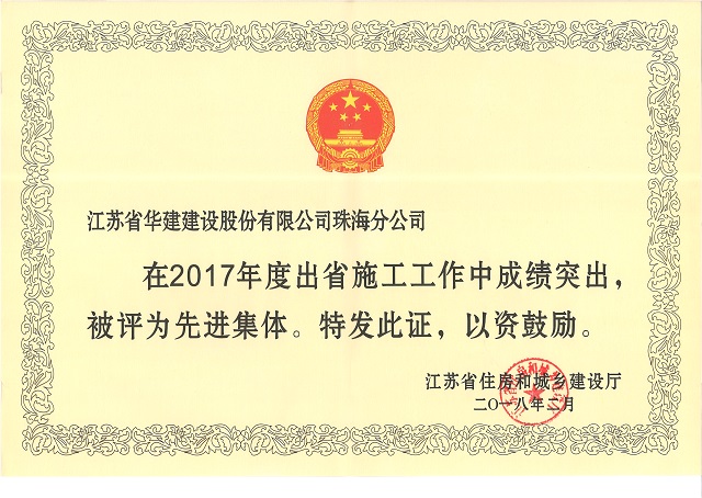 公司獲評(píng)“2017年度江蘇出省施工先進(jìn)集體”