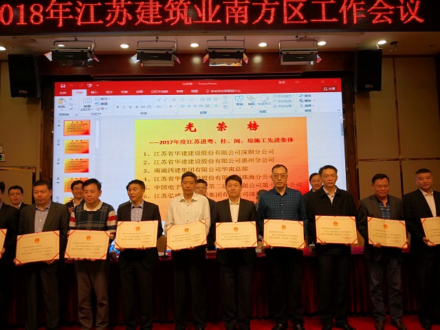 3月24日上午,江蘇省人民政府駐深圳(廣州)辦事處和江蘇省住房和城鄉(xiāng)建設(shè)廳在廣東深圳召開(kāi)2017年度江蘇建筑業(yè)南方區(qū)工作會(huì)議。會(huì)上,珠海公司被江蘇省住房和城鄉(xiāng)建設(shè)廳表彰為“2017年度江蘇出省施工先進(jìn)集體”, 珠海分公司總經(jīng)理呂方達(dá)、陽(yáng)江分公司副總經(jīng)理余新江榮獲“出省施工先進(jìn)個(gè)人”稱(chēng)號(hào)。