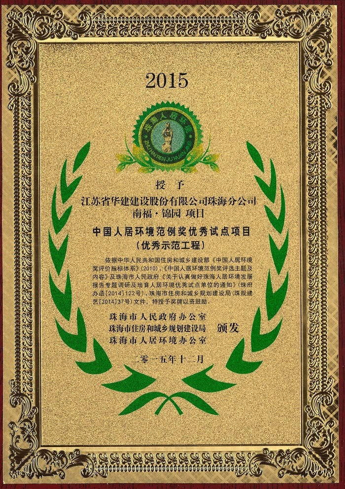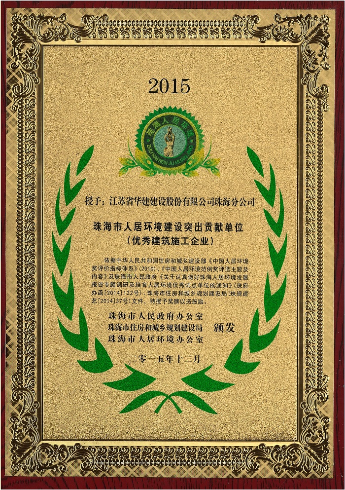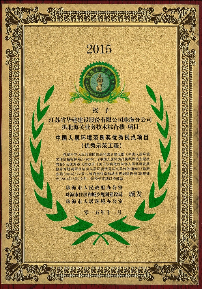 公司榮獲珠海市人居環(huán)境建設突出貢獻單位等四項表彰 時間:2015-12-22 4286 近日,珠海公司被珠海市人民政府辦公室、珠海市住房和城鄉(xiāng)規(guī)劃建設局和珠海市人居環(huán)境辦公室聯(lián)合表彰為珠海市人居環(huán)境建設突出貢獻單位(優(yōu)秀建筑施工企業(yè)),繆國樞總經(jīng)理被授予珠海市人居環(huán)境建設突出貢獻個人稱號,由我公司承建的拱北海關(guān)業(yè)務技術(shù)綜合樓及南福·錦園項目榮獲中國人居環(huán)境范例獎優(yōu)秀試點項目(優(yōu)秀示范工程)。
