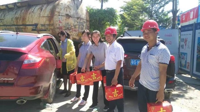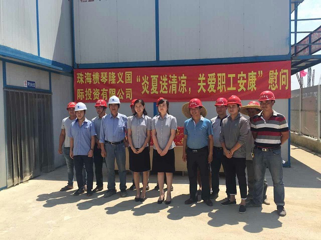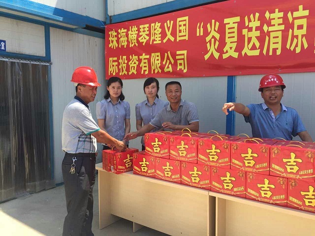 炎炎夏日送清涼 時間:2016-08-01 3788 7月30日上午,珠海分公司橫琴隆義廣場項(xiàng)目部工地?zé)崂顺欤瑱C(jī)聲隆隆,人來人往,一派繁忙景象。一支由江蘇華建直五項(xiàng)目部和橫琴隆義投資公司共同組成的“送清涼”小分隊(duì)也在工地上奔忙著,項(xiàng)目經(jīng)理姚寧與投資公司負(fù)責(zé)人王艷、許珂等正在將一箱箱王老吉飲料有條不紊地送到建筑工人手中,讓廣大一線職工在炎炎烈日下感受到陣陣清涼。