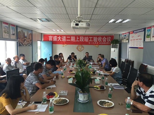 廣安項目官盛大道二期上段順利通過竣工驗收 時間:2016-08-05 2901 8月5日上午,廣安項目官盛大道二期上段順利通過竣工驗收。廣安區住建局副局長周春蘭主持驗收會議,經項目監理、設計、區住建及質監等單位和業主現場代表實測檢查、分別總結匯報后,一致同意工程驗收合格。 官盛大道二期是廣安官盛新區一條東西向城市主干道,道路全長1598米,標準路幅寬度46-60米,雙向六車道,設計時速60km/h。其中上段610米,作為一個單位工程單獨進行驗收。