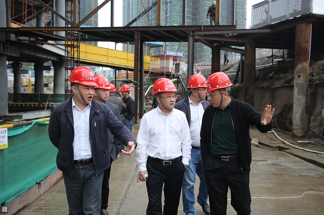當天上午,陸總一行考察了公司在建的華策國際大廈項目,在項目部會議室聽取了該工程的項目概況和施工難點介紹,并到現場參觀工地。