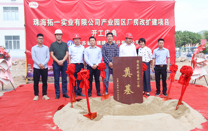 珠海拓一產業園區廠房改擴建項目舉行開工儀式 時間:2019-11-03 2473 11月2日,公司承建的珠海拓一實業有限公司產業園區廠房改擴建項目舉行隆重的開工儀式。 珠海拓一實業有限公司產業園區廠房改擴建項目,擴建項目建筑總面積為19088.9平方米,其中新一號廠房建筑面積為19050.68平方米(地上建筑面積為17019.75平方米,地下建筑面積為2030.93平方米);門衛室建筑面積為38.22平方米,工程暫定價約4600萬元,改建項目正在洽談中。