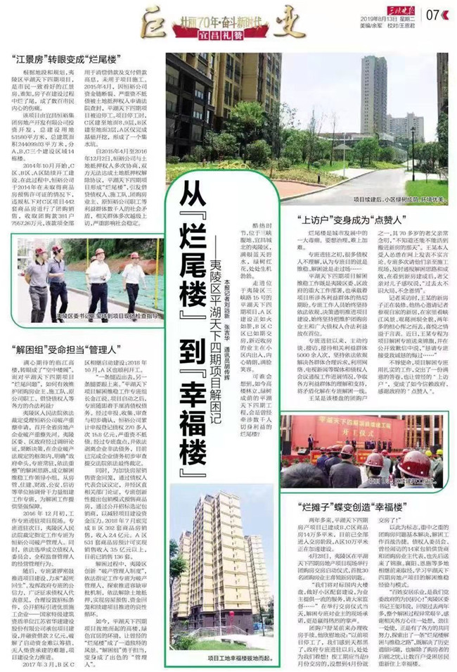 《三峽晚報(bào)》8月13日第7版整版報(bào)道了江蘇華建宜昌分公司總承包建設(shè)的平湖天下四期項(xiàng)目。該項(xiàng)...