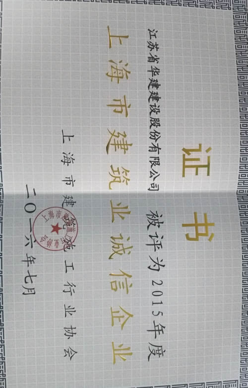 上海分公司積極響應(yīng)上海市行業(yè)主管部門要求全面貫徹落實《建設(shè)部關(guān)于加快建筑市場信用體系建設(shè)工作的意見》號召,在加強行業(yè)自律和誠信建設(shè)方面做了大量有效工作。816,在上海市建筑施工行業(yè)協(xié)會召開的2015年度上海市建筑業(yè)誠信企業(yè)頒獎大會上,公司被表彰為“上海市建筑業(yè)誠信企業(yè)”(僅206家在滬建筑施工企業(yè)),這是第九次獲此殊榮。