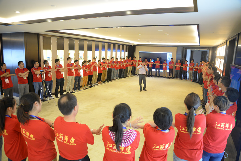 下午,大家還舉行了短暫的拓展活動(dòng),在簡(jiǎn)單的游戲中悟出了深刻的成長(zhǎng)道理。隨后,4個(gè)組各一男一女2名代表和1名部門(mén)負(fù)責(zé)人就如何拓展公司員工成長(zhǎng)的通道和途徑分享了各自的想法和建議。陸董事長(zhǎng)向表現(xiàn)優(yōu)異的員工代表贈(zèng)送了書(shū)籍。12名青年員工代表行正式拜師禮,拜12名老員工為師,師徒共同在青年員工成長(zhǎng)目標(biāo)導(dǎo)航圖上簽字,活動(dòng)在《點(diǎn)一盞心燈給你》的音樂(lè)聲中圓滿結(jié)束。