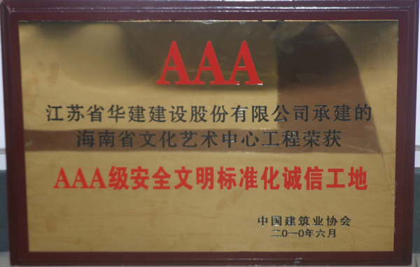 近日,經中國建筑業協會建筑安全分會在專家評審、組織抽查和網上公示,海南公司承建的海南省文化藝術中心工程榮膺全國“AAA級安全文明標準化誠信工地”,這是海南公司近年來首次獲得此項榮譽。