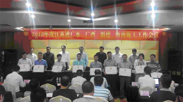 海南分公司榮獲2013年江蘇進粵、桂、閩、瓊施工先進企業 時間:2014-04-28 4048 4月25日,2013年度江蘇進廣東、廣西、福建、海南施工工作會議在珠海市市委黨校學苑賓館召開。會上,海南分公司榮獲“2013年江蘇進粵、桂、閩、瓊施工先進企業”,高家馴被表彰為“2013年江蘇進粵、桂、閩、瓊施工優秀企業經理”,1人被評為優秀建造師、2人分別被評為質量安全和經營財務管理先進個人。 另訊:4月19日,從中國施工企業管理協會第29次年會傳來喜訊,海南公司匡新益被評為2013年度“全國工程建設優秀項目經理”。