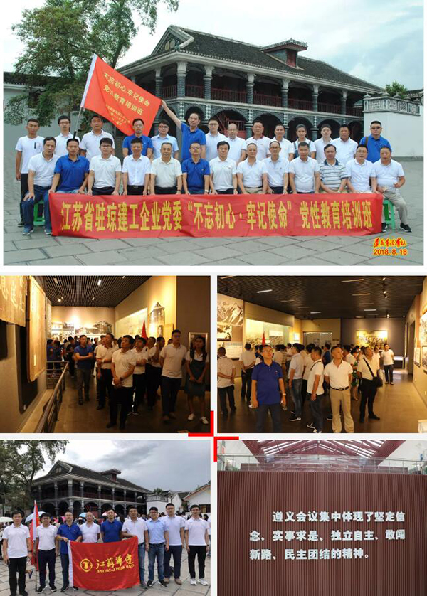 為深入學(xué)習(xí)貫徹黨的十九大會議精神,進(jìn)一步加強黨員理想信念教育,弘揚傳承紅色革命精神。8月17日至20日,江蘇省駐瓊建工企業(yè)黨委、華建海南黨總支根據(jù)年度黨建工作計劃和部署,組織27名黨員干部赴貴開展以“不忘初心·牢記使命”為主題的第一批黨員培訓(xùn)班,接受了一次深刻的紅色文化教育。