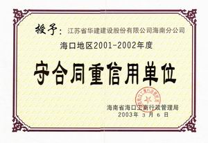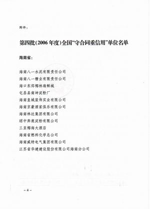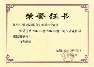 企業誠信榮譽 時間:2019-01-01 8940 2001-2002年度??谑惺睾贤匦庞?nbsp; 2003-2004年度海口市守合同重信用 2005-2006年度??谑惺睾贤匦庞?nbsp; 2002-2004年度海南省守合同重信用 2006年度全國守合同重信用1 2006年度全國守合同重信用2 2006年度全國守合同重信用3 2006年度全國守合同重信用4 2012年度海南省守合同重信用
